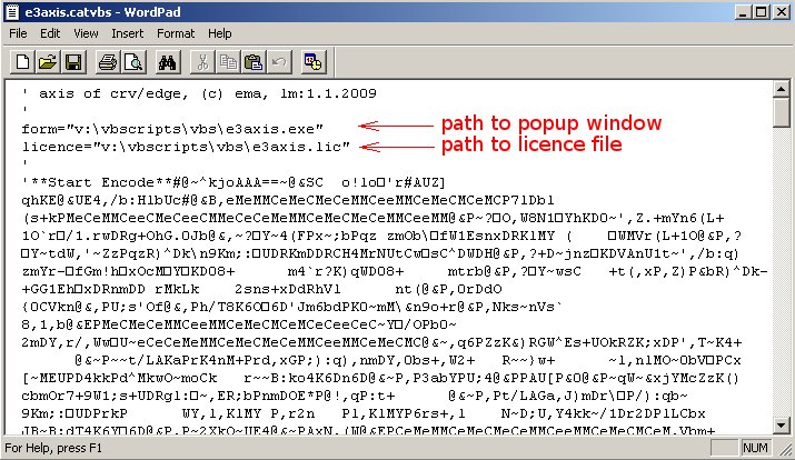 - open e3axis.catvbs in wordpad and edit 4.rd line to set path to e3axis.lic file